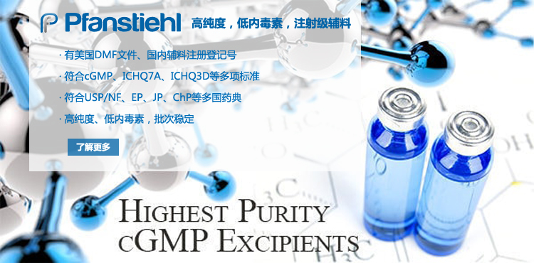 “熱烈祝賀Pfanstiehl的注射級甘氨酸Glycine(G-140)喜獲CDE登記號F20250000403, 這是Pfanstiehl產品獲得的第18個CDE登記號!”甘氨酸在醫藥輔料制劑中應用廣泛,, 可作為緩沖劑,增溶劑,穩定劑等,具有諸多優勢。Pfanstiehl秉承一貫高品質理念,為滿足全球生物制藥行業對于高品質甘氨酸的需求,隆重推出的注射級甘氨酸Glycine (G-140), 具有超高純度,超低內毒素,超低金屬殘留的特點,單獨檢測29種金屬離子,并且新增DNA,RNA,DNA酶,RNA酶和脂肪酶,亞硝酸鹽等多項質量指標的檢測,符合多國藥典規定(USP, EP, BP, JPE, ChP),可用于生物治療性藥物和疫苗的生產。產品信息:· 產品名稱:Glycine, High Purity, Low Endotoxin, Low Metals, USP, EP, BP, JPE, ChP (G-140)· 中文名稱:甘氨酸· 分子式:C2H5NO2· 分子量:75.07 g / mol· CAS號:56-40-6· 產品貨號:G-140產品特點: · 超高純度,超低內毒素,超低微生物含量,超低金屬雜質殘留· 質量指標新增DNA,RNA,DNA酶,RNA酶,脂肪酶和亞硝酸鹽檢測· 符合多國藥典:USP, EP, BP, JPE, ChP· 符合ICH Q3D標準· 符合GMP標準· 已獲DMF和CDE登記號 產品應用:· 緩沖劑· 穩定劑· 增溶劑如果您對Pfanstiehl注射級別Glycine G-140感興趣,歡迎聯系Pfanstiehl 中國區代理商北京西美杰科技有限公司獲得如下詳細的產品概況說明文件和測試樣品。Pfanstiehl Inc.最新產品系列如下,歡迎聯系北京西美杰科技有限公司獲取100g裝免費樣品。北京西美杰科技有限公司為Pfanstiehl中國代理,為客戶提供完善的技術支持與售后服務。歡迎撥打西美杰客服電話400-050-4006或者登陸網站www_xmjsci_com.zkwanhe.com了解更多信息。 更多>